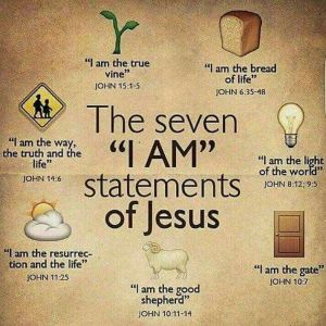 I am the Bread of Life – John 6 I am the Light of the World. – John 8 I am the Door (Gate) of the Sheep. – John 10 I am the Good Shepherd. – John10 I am the Resurrection and the Life. – John 11 I am the Way, the Truth, and the Life. – John14 I am the True Vine. – John 15